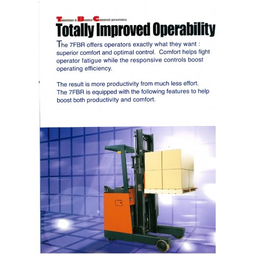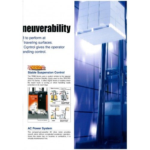 7FBR10-30 Toyota's 7-series reach truck offers the industry's first AC Power System, along with Traction & Brake Control which gives improved traction, better braking and suspension control for more stability.In addition, Power selection to provide optimum balance of power, battery use 25% longer operation at top performance level